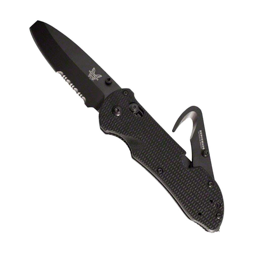 This dynamic, triple utility tool includes a knife, safety hook and glass breaker. An ideal every day carry (EDC) knife for rescue personnel and first responders. Primary blade is N680 stainless steel for combined corrosion with high wear resistance, and features partial serration. The black BK coating provides additional protection against corrosion. Textured G10 handles ensure positive grip and includes a reversible, tip-up, deep-carry pocket clip. The patented, AXIS lock mechanism (primary blade) makes the knife easy to open and easy to close for right and left handed users while providing a positive and secure lock when blade is open.